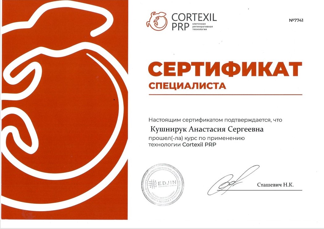 2025 год - Курс по применению технологии Cortexil PRP (клеточная регенеративная технология).