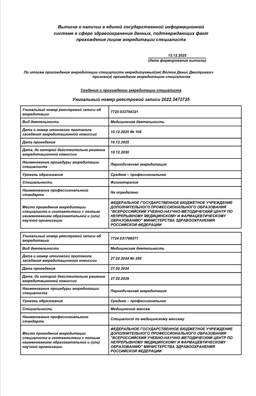 С 2019 г. по наст. вр. - Многопрофильная клиника №1 ВиТерра Беляево. Массажист.