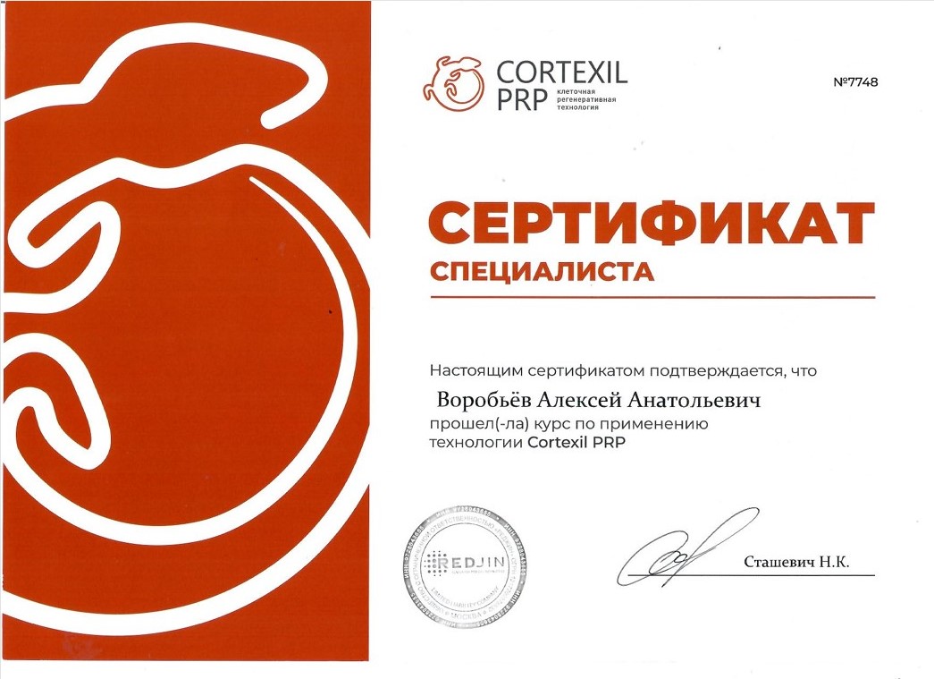 2025г. - Курс по применению технологии Cortexil PRP (клеточная регенеративная технология).